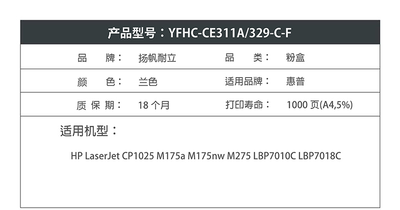 扬帆耐立CE311A(126A)兰色硒鼓粉盒适用惠普HP CP1025 M175 176 177 2