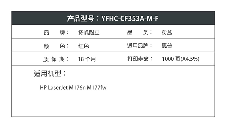 扬帆耐立CF353A粉盒适用惠普HP M176n 130A M177红色-商专版