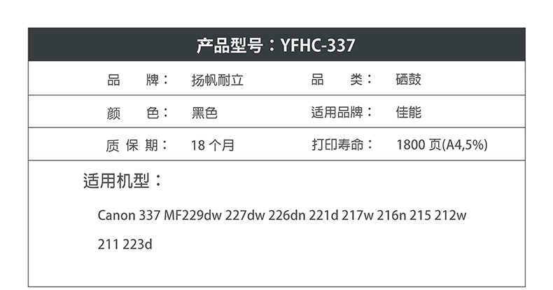 扬帆耐立CRG337/CN337硒鼓适用佳能MF229 227 226 221 217 216 21