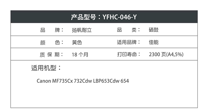 扬帆耐立046黄色硒鼓 适用佳能 MF735Cx 732Cdw LBP653Cdw 654-商专版