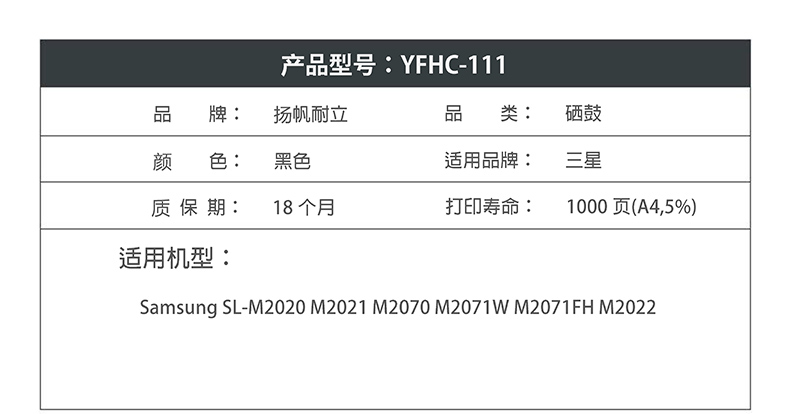 扬帆耐立111硒鼓适用三星 ML-2020W ML2022W ML2070FW ML2070 M20