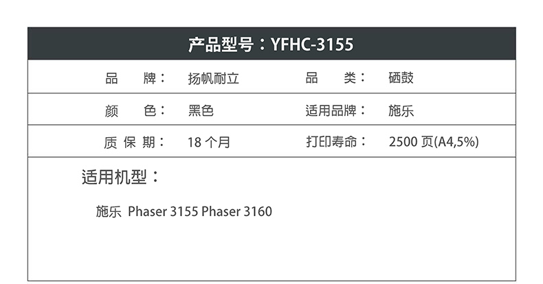 扬帆耐立3155 黑色硒鼓 粉盒 适用于施乐Phaser 3155 3160-商专版
