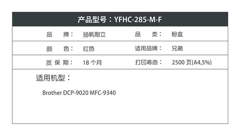 扬帆耐立 TN285粉盒 适用兄弟DCP-9020 MFC-9340红色-商专版