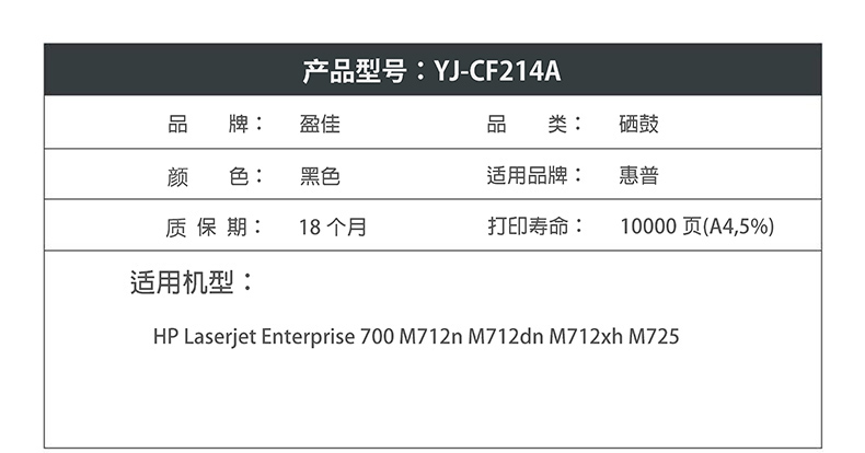 盈佳CF214A硒鼓适用惠普hp700 M712dn M712xh M725-商专版