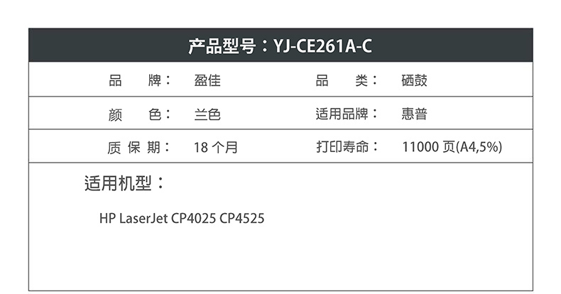盈佳CE261A(648A)硒鼓兰色适用惠普HP LaserJet CP4025 CP4525-商专