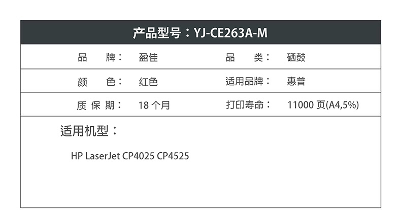 盈佳CE263A(648A)硒鼓红色适用惠普HP LaserJet CP4025 CP4525-商专