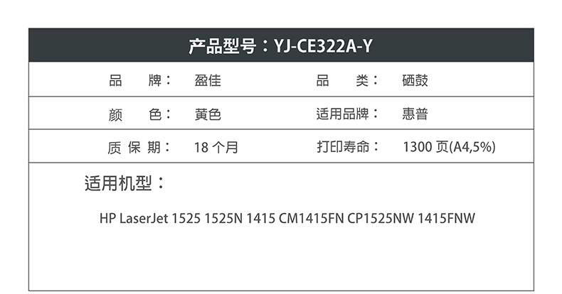 盈佳CE322A硒鼓黄色128A适用惠普 1525 1525N 1415 CM1415FN CP15