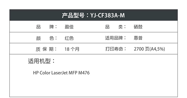 盈佳CF383A(312A)硒鼓红色适用惠普HP Color LaserJet MFP M476-商
