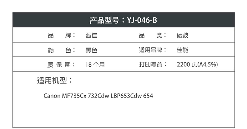盈佳046硒鼓黑色适用佳能MF735Cx 732Cdw LBP653Cdw 654-商专版