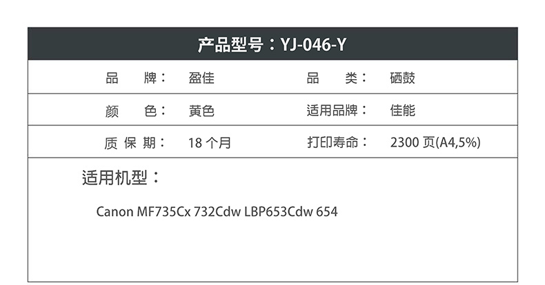 盈佳046硒鼓黄色适用佳能MF735Cx 732Cdw LBP653Cdw 654-商专版