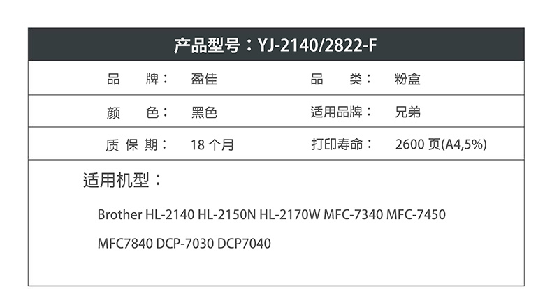 盈佳TN2140粉盒适用兄弟2125 2140 7450联想M7205-商专版