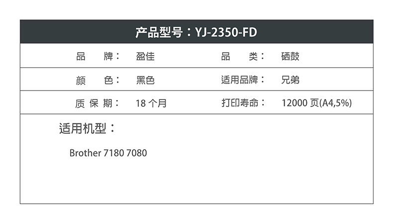 盈佳 DR2350硒鼓组件 适用兄弟Brother7180 7080打印机-商专版