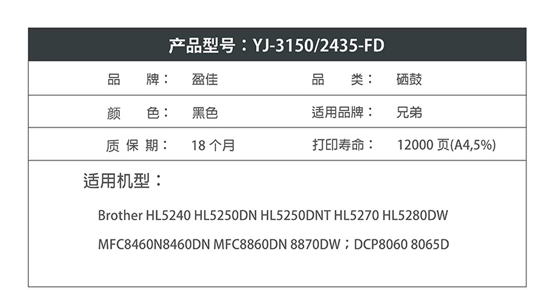 盈佳DR3150/2435硒鼓组件适用HL5240/HL5250DN/HL5250DNT/HL527
