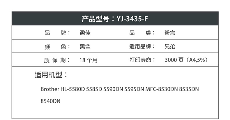 盈佳TN3435墨粉盒适用兄弟HL-5580D 5585D 5590DN 5595DN MFC-85