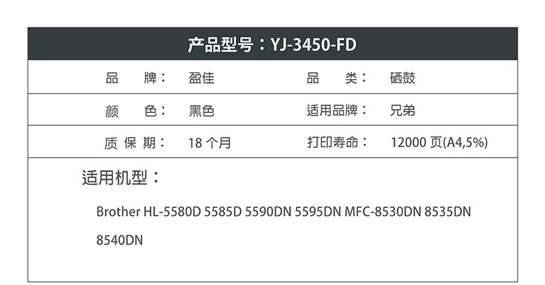 盈佳DR3450硒鼓组件适用兄弟HL-5580D 5585D 5590DN 5595DN MFC-8