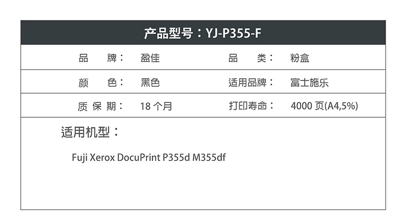 盈佳FX-P355粉盒适用富士施乐Fuji Xerox DocuPrint P355d M355df