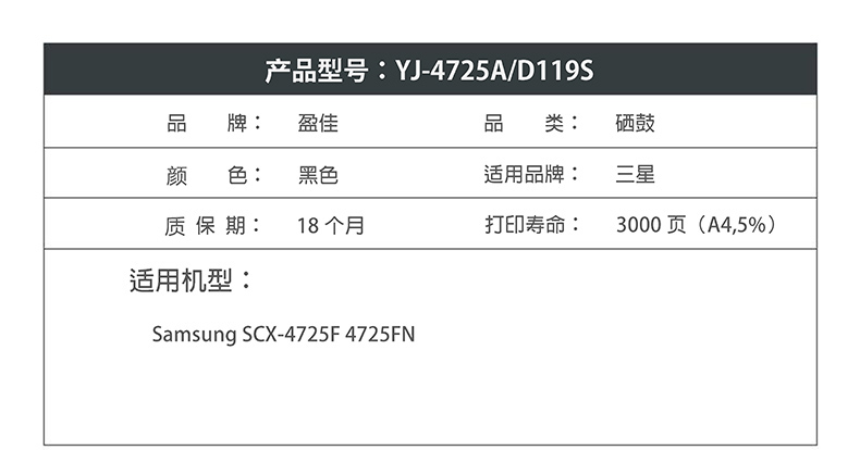 盈佳SX-4725A/D119S硒鼓适用三星SCX-4725F 4725FN-商专版