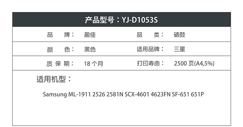 盈佳D1053S硒鼓适用ML-1911/2526/2581N/SCX-4601/4623FN/SF-