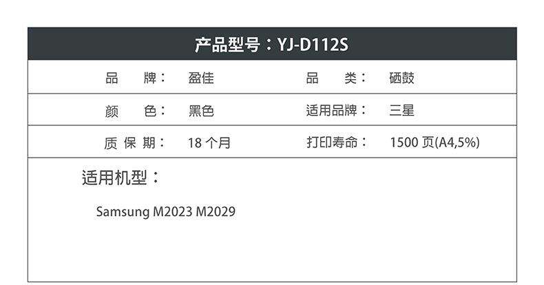 盈佳SX-D112S硒鼓适用三星SXM2023/M2029-商专版