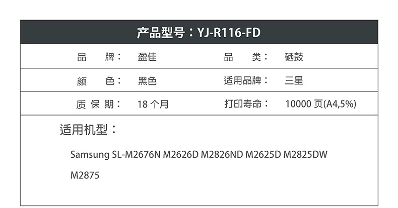 盈佳MLT-R116硒鼓组件适用SL-M2676N/M2626D/M2826ND/M2625D/M2