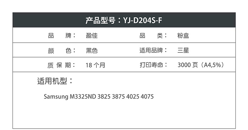 盈佳SX-D204S墨粉盒适用三星M3325ND 3825 3875 4025 4075-商专版