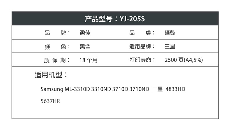 盈佳205S硒鼓适用三星ML-3310ND 3710ND 4833HD 5637HR-商专版
