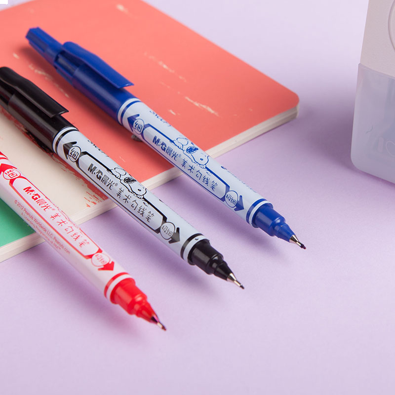 晨光(M&G)文具黑色双头美术勾线笔 学生记号笔 史努比系列学习重点标记笔 SPM21302蓝双头