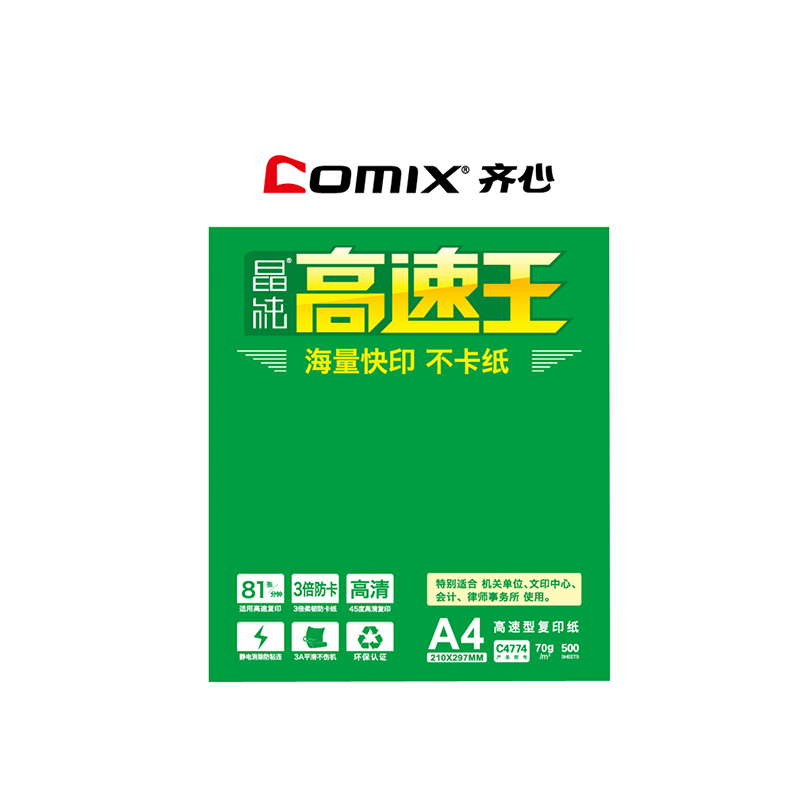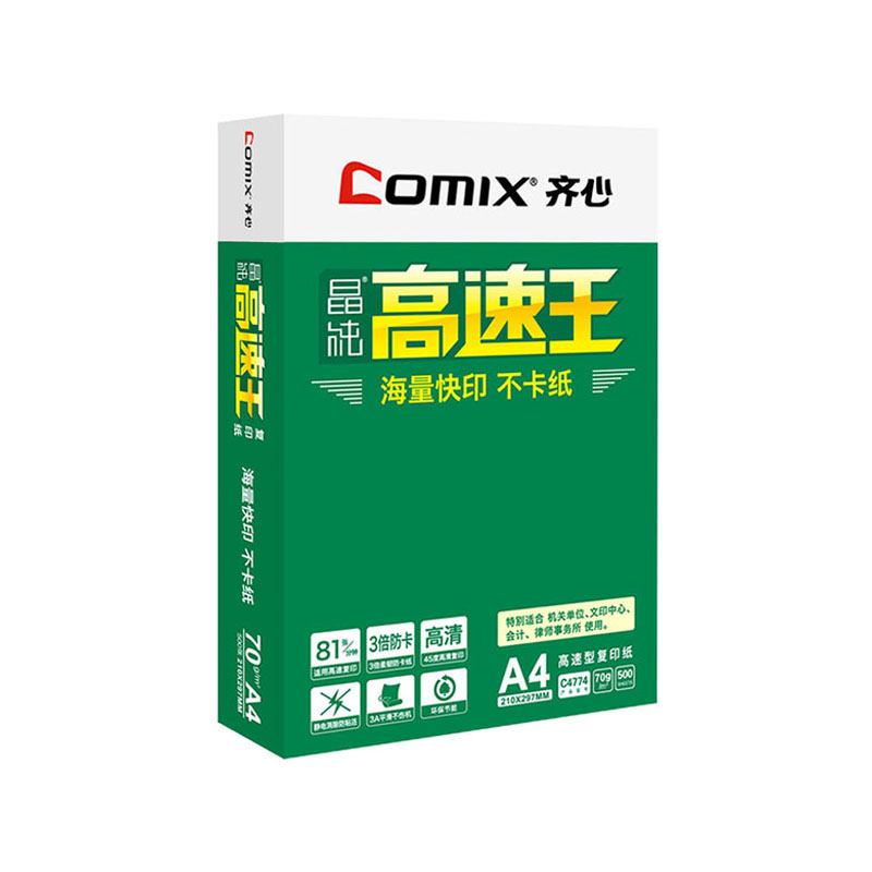 齐心(COMIX)高速王复印纸 500张/包 70g A4一箱5包(2500张)