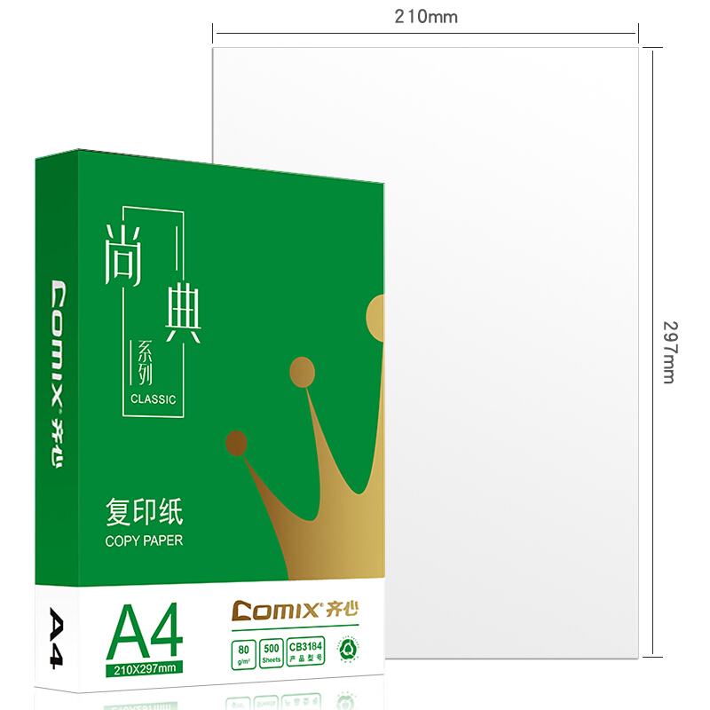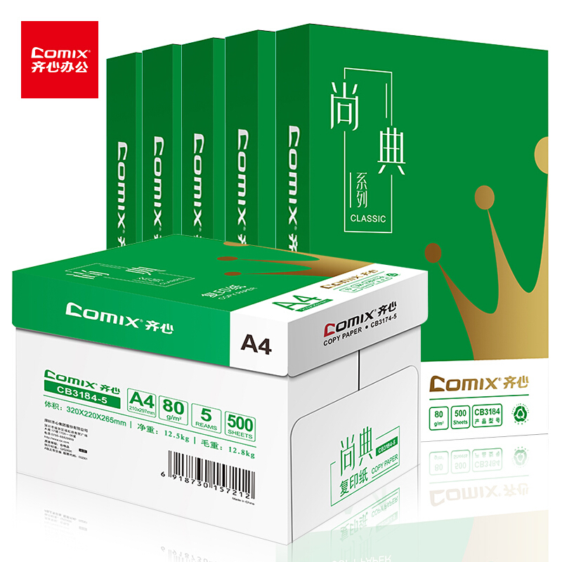 齐心(Comix)尚典 80g A4 复印纸 500张/包 5包/箱 CB3184-5