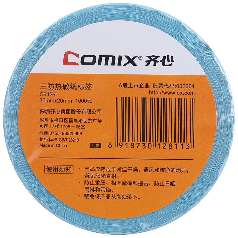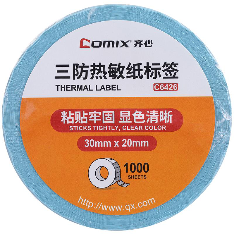 齐心(Comix) 30*20mm 1000张/单卷 C6426 热敏三防打印不干胶纸适用于超市、药店、服装店、奶茶店