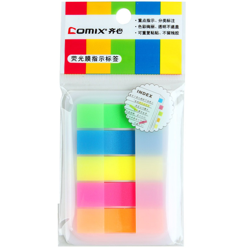 齐心(Comix)20张*5色荧光指示标签/便签条/便利贴/百事贴(44x12mm)办公文具D6017