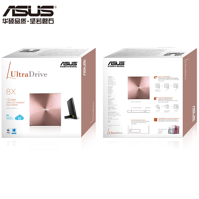 华硕(ASUS) 8倍速 USB2.0 笔记本外置光驱 DVD刻录机 免驱动