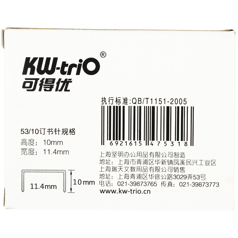 可得优(KW-triO)钉枪专用订书针重型钉枪订书钉穿透力强耐腐蚀针脚10mm