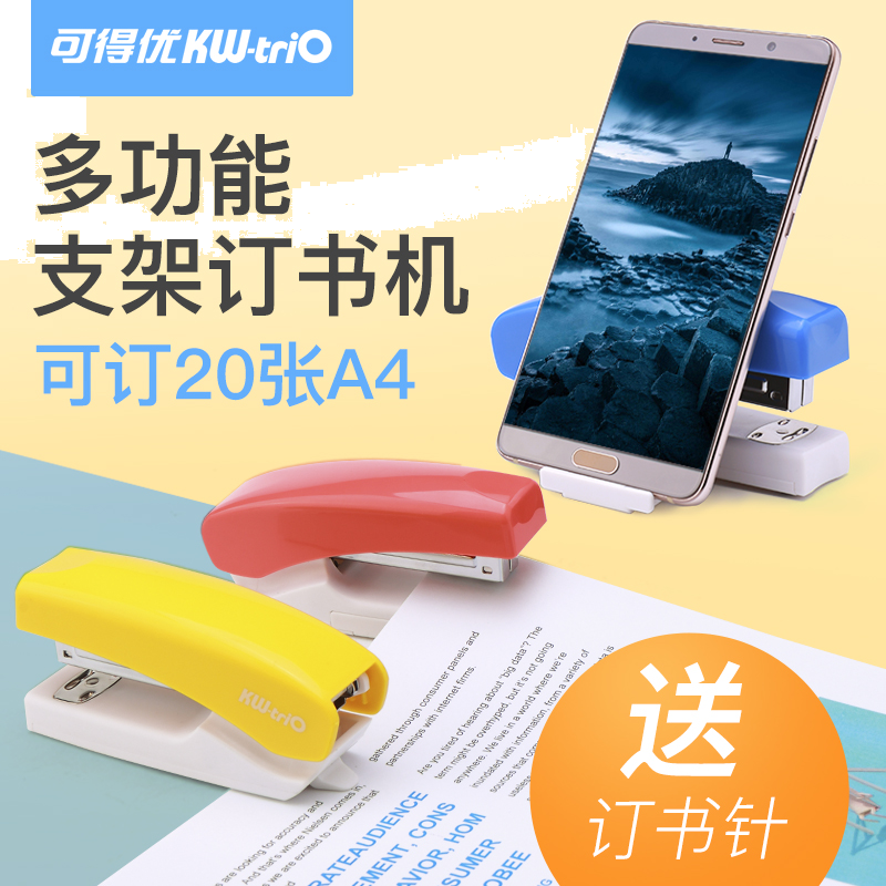可得优(KW-triO)手机支架订书机小号钉书机钉订书器迷你大号重型加厚大装订机多功能黄色