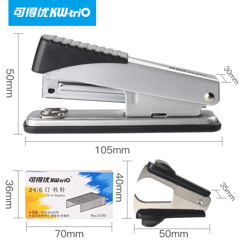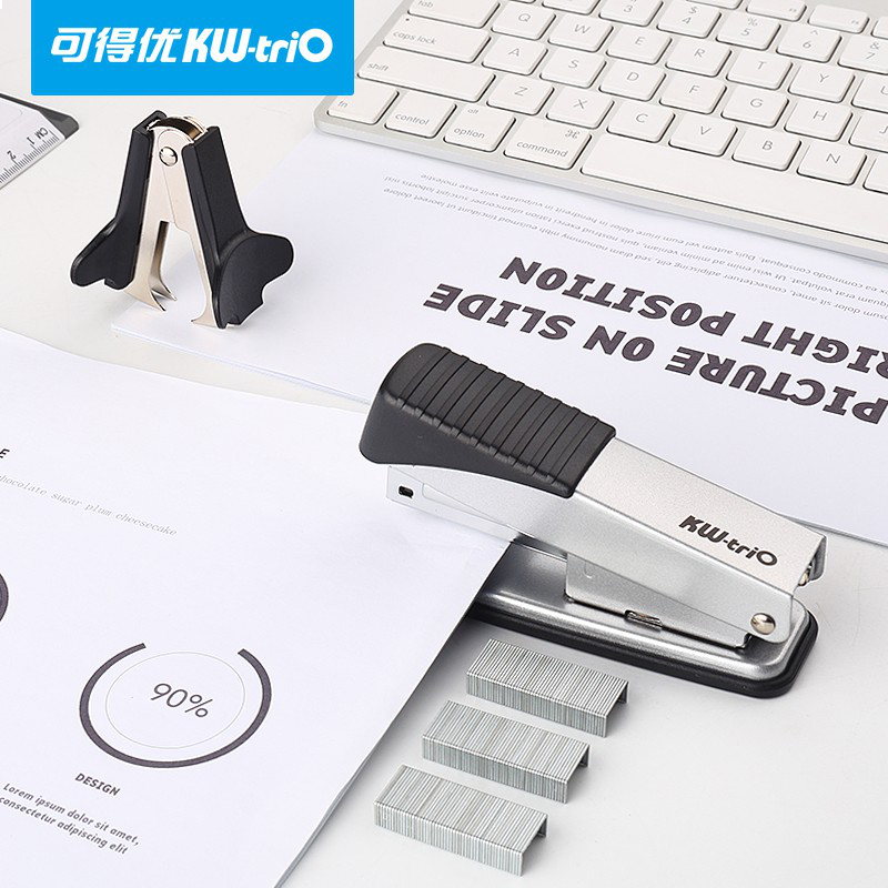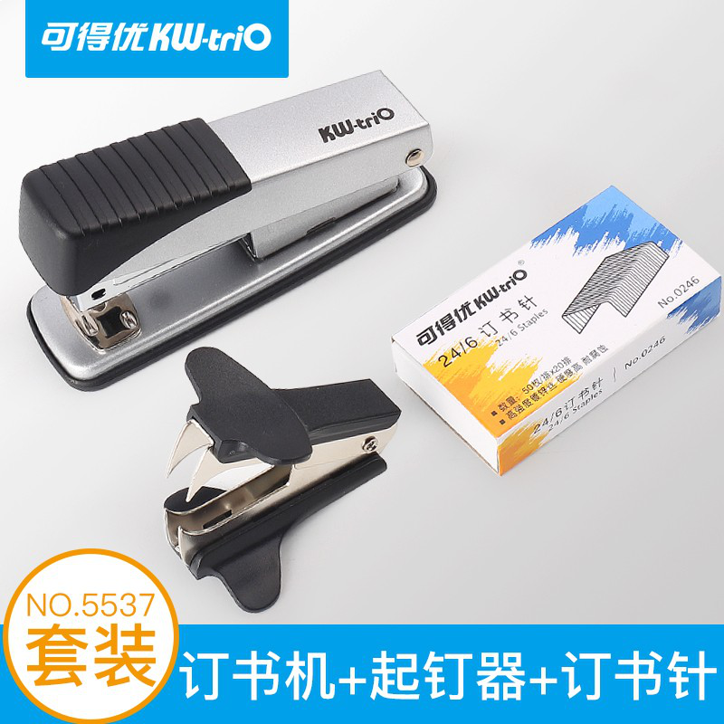可得优(KW-triO)金属订书机套装(订书机+起钉器+订书针)订书机钉书器订书器装订机可订20页银色订书机三件套