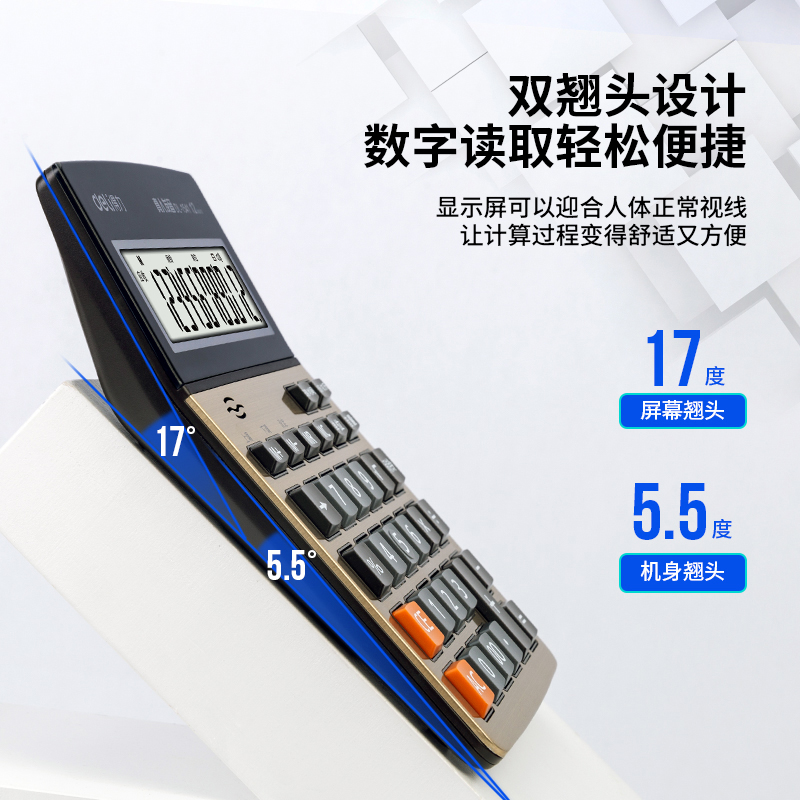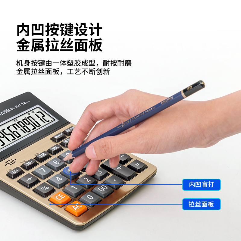 得力(deli)12位大屏幕语音计算器 闹钟日历功能语音计算机办公用品金色1541A双个装