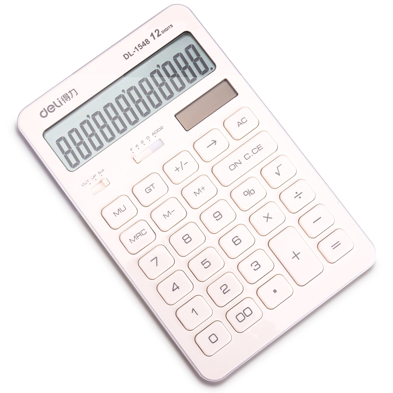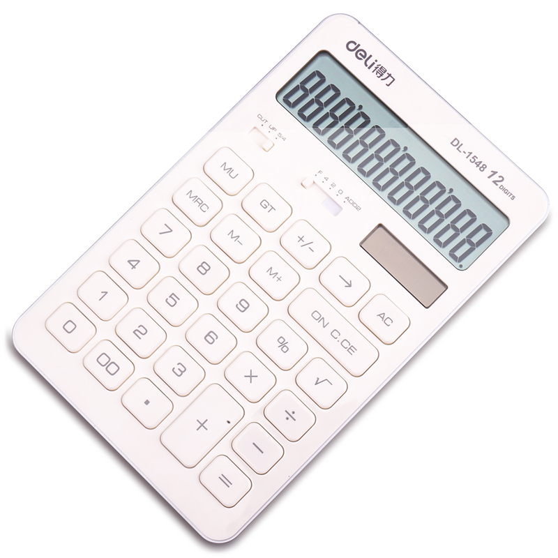 得力(deli) 时尚彩色计算器 学生12位太阳能双电源大按键设计办公用品1548A净白2个装