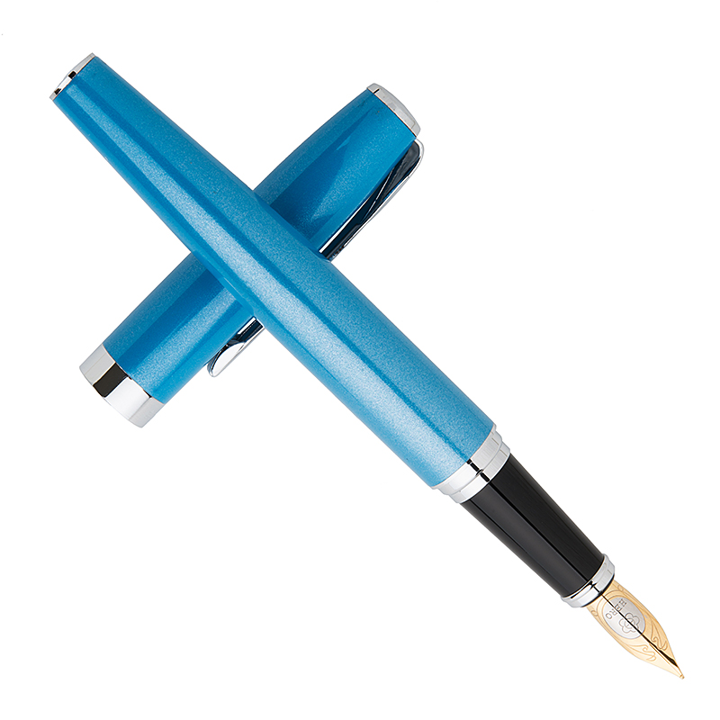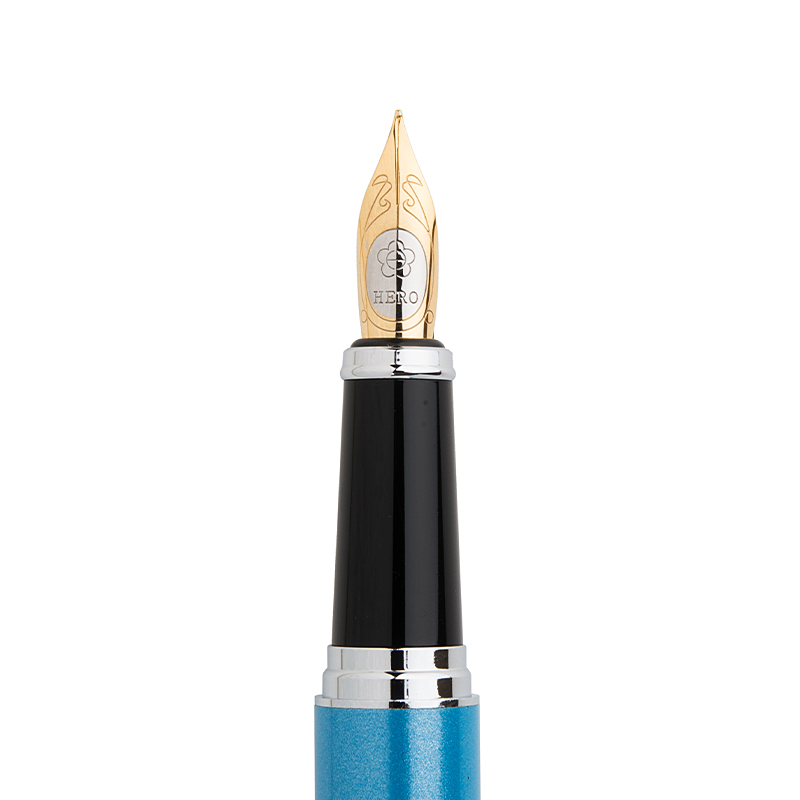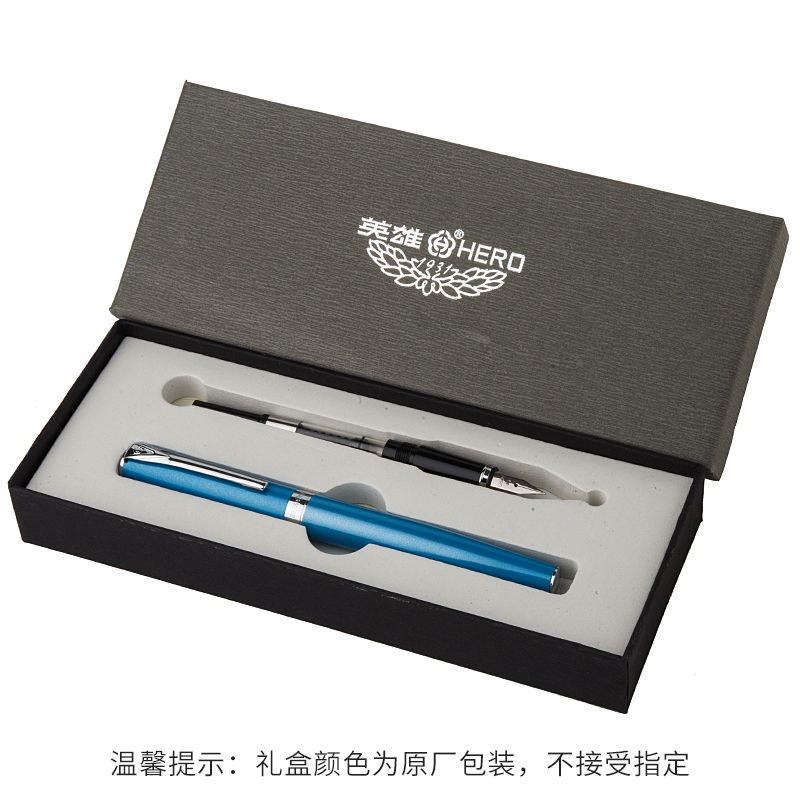 英雄(HERO)蓝色双笔尖(F+EF尖)铱金钢笔墨水笔套装 916