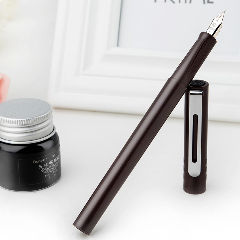 英雄(HERO)咖色铱金钢笔学生练字墨水笔 1203