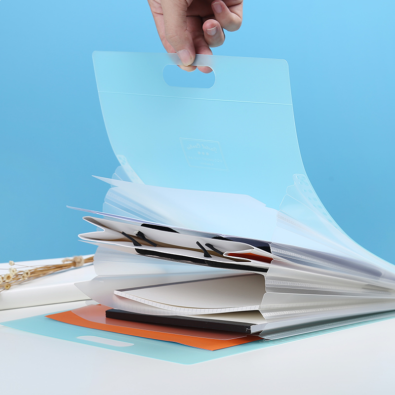 国誉(KOKUYO)淡彩曲奇学生薄款竖款松紧风琴包/资料册/文件夹/收纳袋A45层6页蓝色WSG-DFC65B