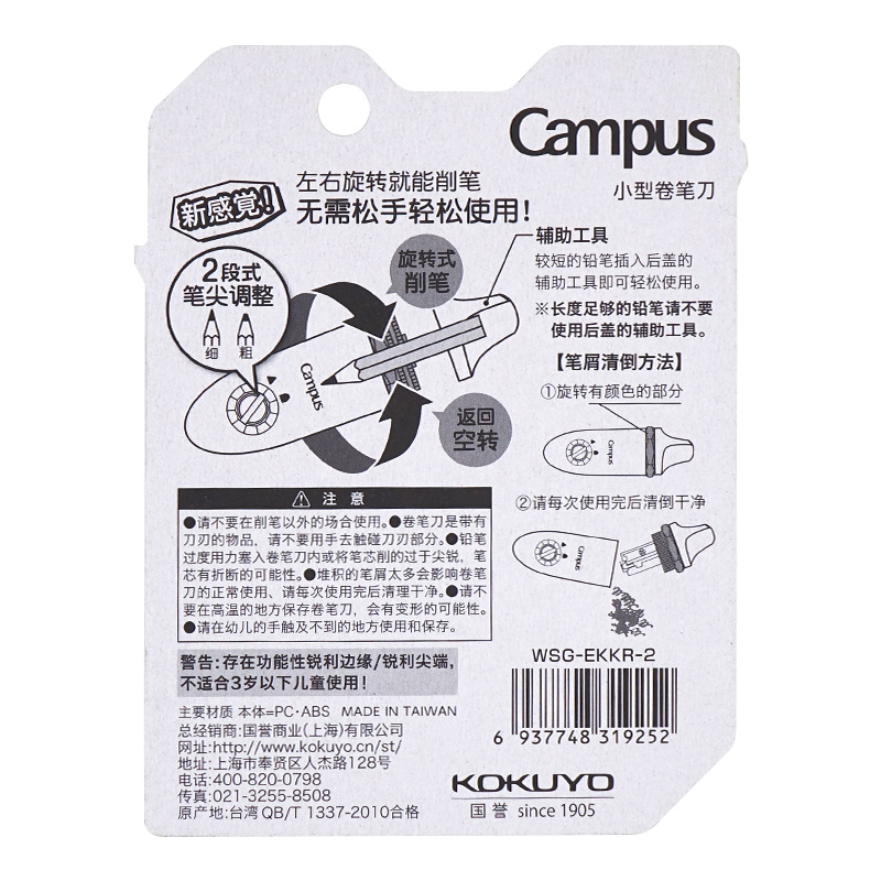 国誉(KOKUYO)学生用Campus Kids铅笔卷笔刀28.5*29.5*90mmWSG-EKKR-2熊猫图案