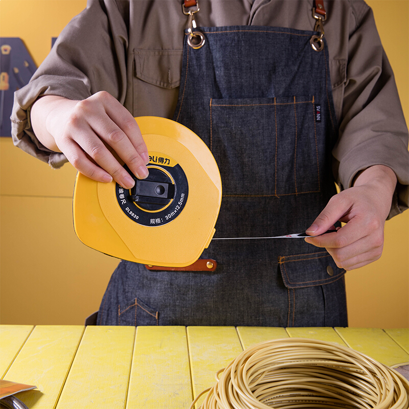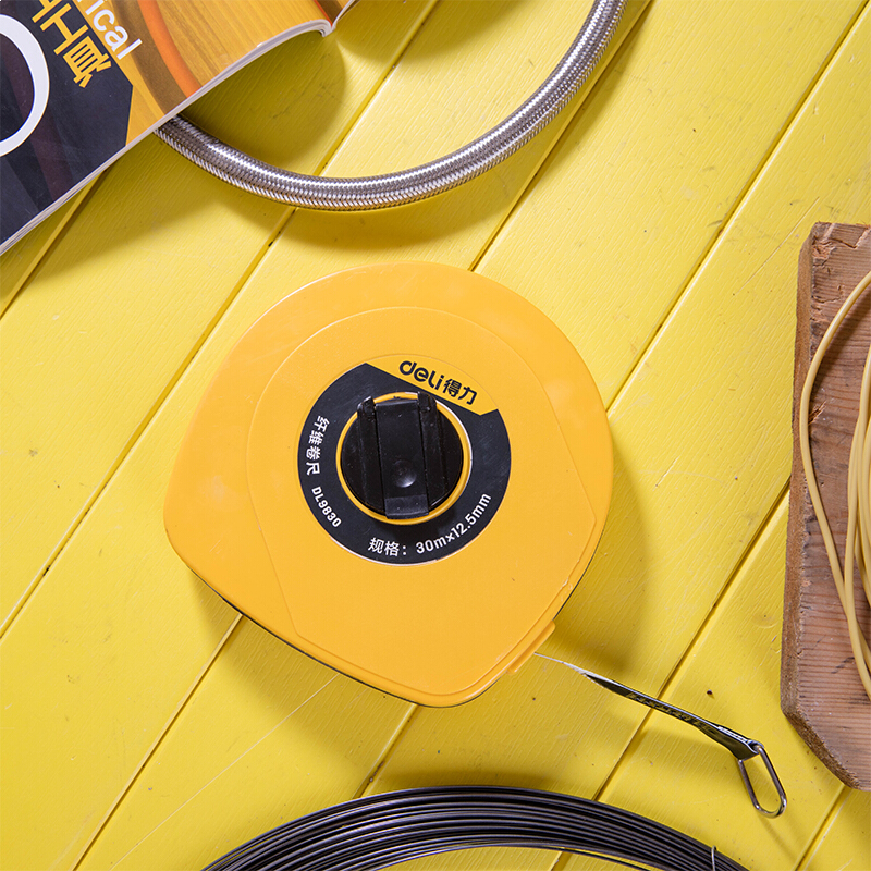 得力(deli) 30米纤维尺纤维盒式卷尺操场盘式皮卷尺软尺伸缩尺工程测量工具30mx12.5mm DL9830