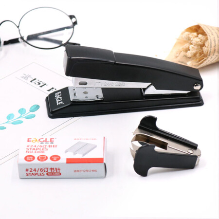 益而高(EaGLE)订书机套装 钢制耐用办公装钉组合(订书器+起钉器+12#订书钉) 颜色随机