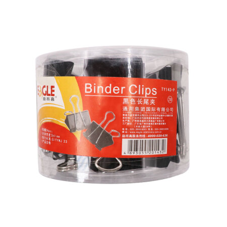 益而高(EAGLE)24只装41mm彩色长尾夹 中号金属燕尾夹票据夹办公收纳夹 1桶装 TY143-P