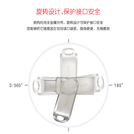 闪迪 SanDisk512GB Type-C USB3.1手机U盘 DDC4至尊高速酷珵 读速150MB/s 全金属旋转双接口 手机电脑用