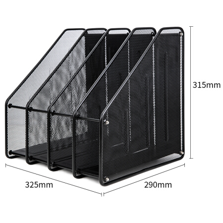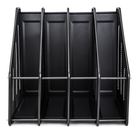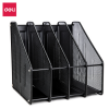 得力(deli)金属网材四联杂志盒 A4四栏文件座文件框 黑色78994