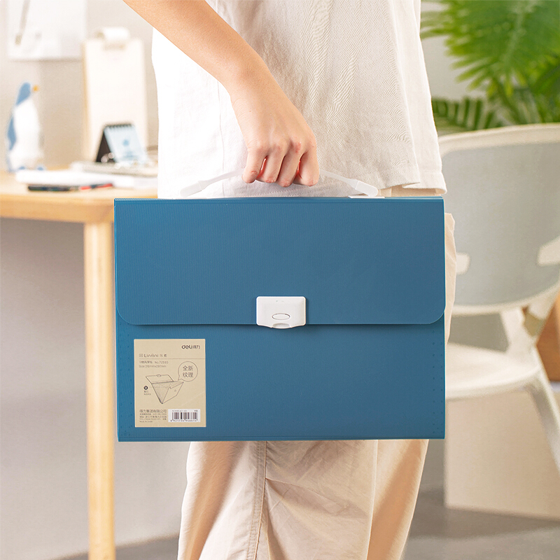 得力(deli)13格A4手提风琴包多层文件夹 乐素系列学生试卷收纳袋资料册补习包 浅蓝72593