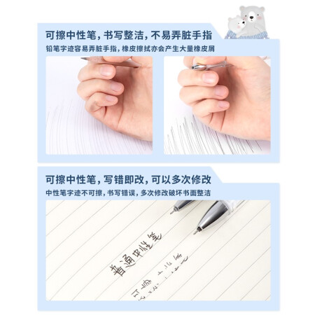 得力(deli)文具0.5mm毛衣熊系列魔力热可擦笔 全针管中性笔水笔签字笔 黑色 12支/盒A651