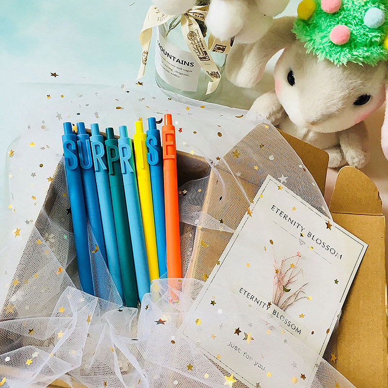 KACO 字母数字按动中性笔0.5黑 字母E-橙色笔杆 糖果色创意按动水笔签字笔彩色笔杆中性笔 黑色笔芯