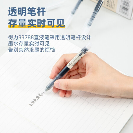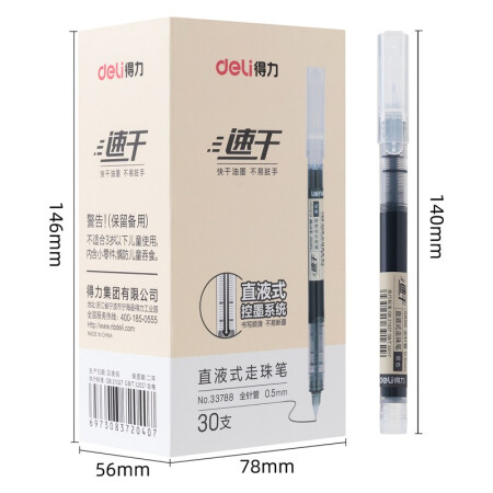 得力(deli)直液笔走珠签字笔 学生办公中性笔 ins无印简约风 0.5mm全针管30支/盒33788黑